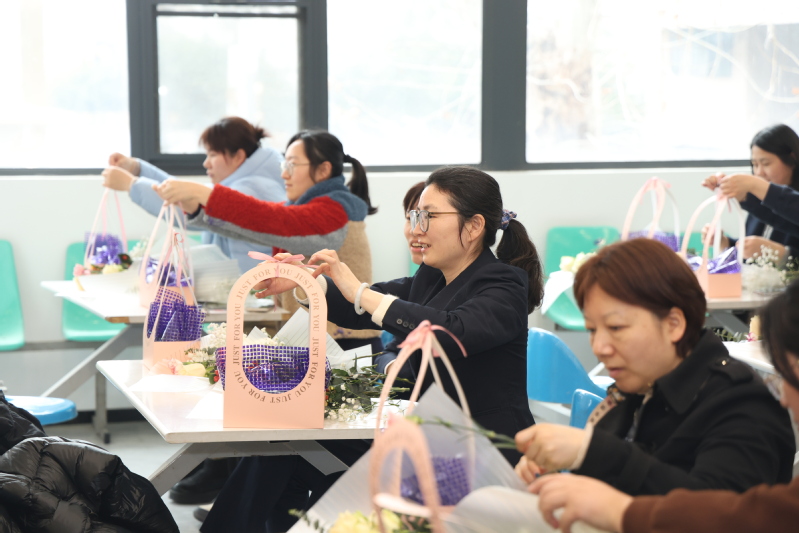 一束束精心搭配的花艺作品次第绽放,映衬着女职工们自信从容、向阳而生的灿烂笑颜,生动展现了新时代女性热爱生活、积极向上的精神风貌。大家互相欣赏彼此的作品,交流插花心得,现场氛围温馨而热烈,欢声笑语不断。