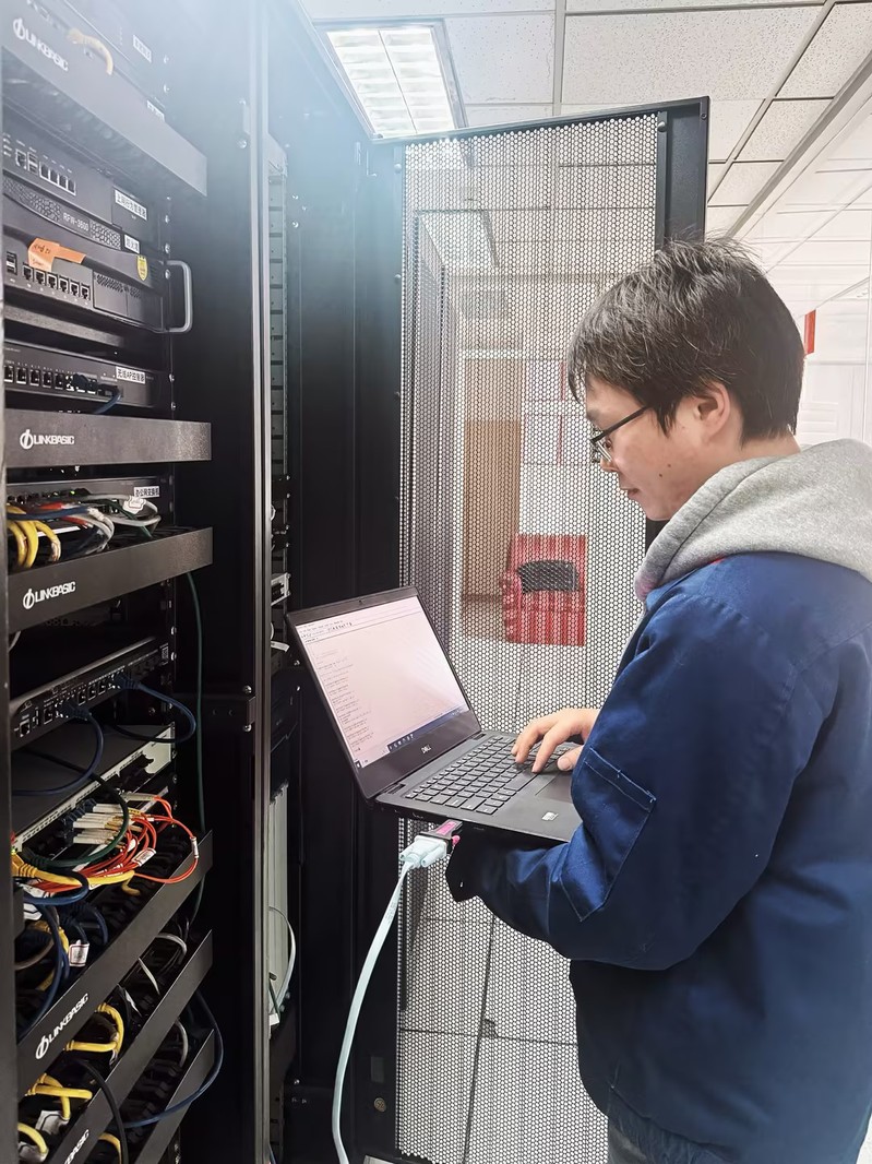 (许远正在检查网络核心设备运行情况)